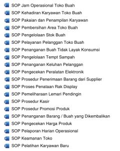 Bayangkan jika Anda harus menyusun SOP sendiri dan belajar dari nol, biaya kursus dan konsultasi bisa mencapai jutaan rupiah! Template ini bukan hanya menawarkan solusi komprehensif, tetapi juga menghemat waktu dan uang Anda dan membantu menghindari kerugian yang bisa timbul dari kesalahan awal dalam memulai bisnis toko buah.